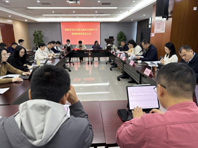 10月30日,鐵路基金公司黨支部召開集體學習會議,深入學習黨的二十屆四中全會精神,傳達宣貫國務(wù)院國資委關(guān)于“十五五”編制工作相關(guān)會議精神。會議強調(diào),要把學習貫徹全會精神與做好當前工作緊密結(jié)合起來,深入研究謀劃公司“十五五”發(fā)展,聚焦增強核心功能、提升核心競爭力,為“十五五”開好局、起好步打好基礎(chǔ)。